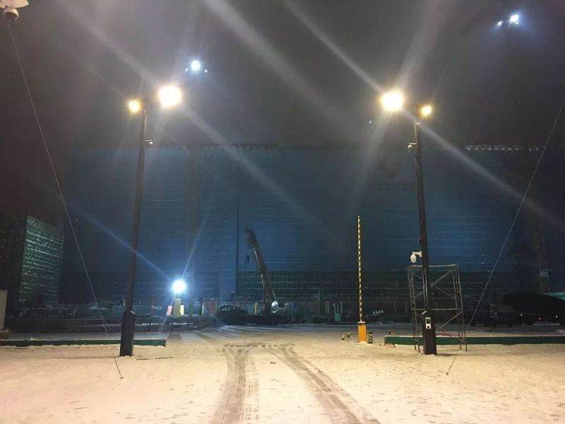 由于工地还在建设期,现场条件恶劣,现场几个年轻人要徒手将不规则土坑掘成53cmx53cm的规格,再将重量为他们体重之和近2倍的两根灯杆屹立起来。同时,还得临时“客串”电工、技工,将灯杆内上千根线路组接无误,正常点亮照明……