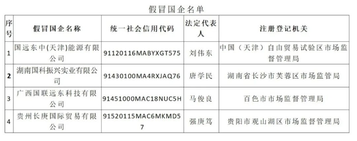 1.经核实,国远东中(天津)能源有限公司、湖南国科振兴实业有限公司、广西国联远东科技有限公司、贵州长庚国际贸易有限公司及前述4户企业的全级次下属公司均为假冒国企,与我公司以及子公司无任何隶属或股权关系,也不存在任何投资、合作、业务等关系,其一切行为均与我公司无关。