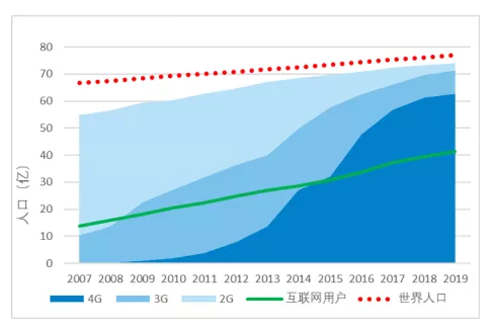 图 6 2007-2019全球蜂窝网络覆盖情况