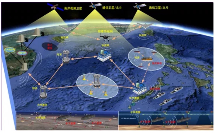 面对海洋综合感知网络信息体系的快速发展,当前的海洋通信网络无法适应业务全面拓展的需求,亟需按照“空、天、岸、海、潜”五位一体的多元异构接入、多网系融合和多元业务承载的思路,发展新型海洋通信网络架构,解决全方位的随遇接入、统一组网和按需服务等问题。